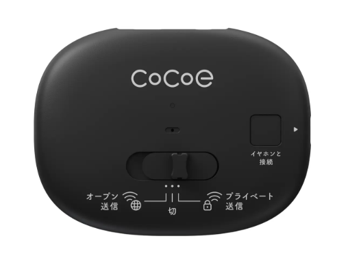 本製品は入力したテレビの音声を「cocoe Ear」へ無線(Auracast™)で送信します。「cocoe Ear」で接続し、ご自身に最適な音量でテレビの音声を聴きつつ、周囲とのコミュニケーションも可能となります。